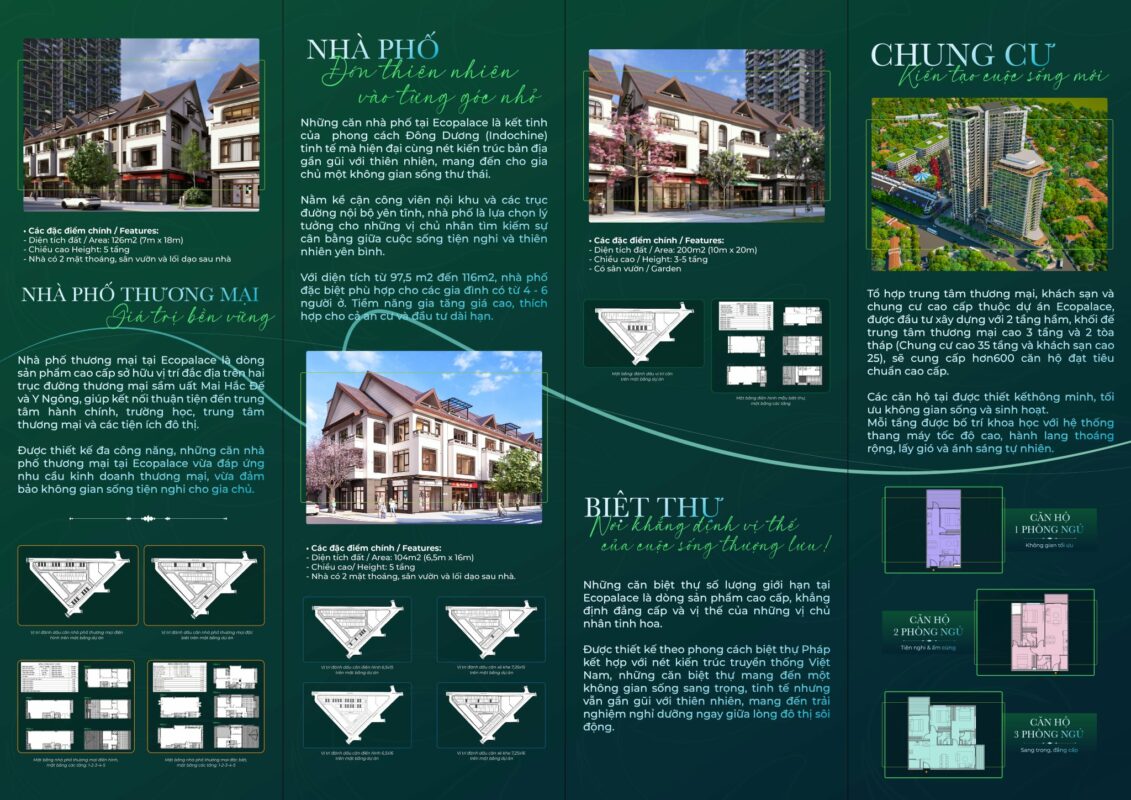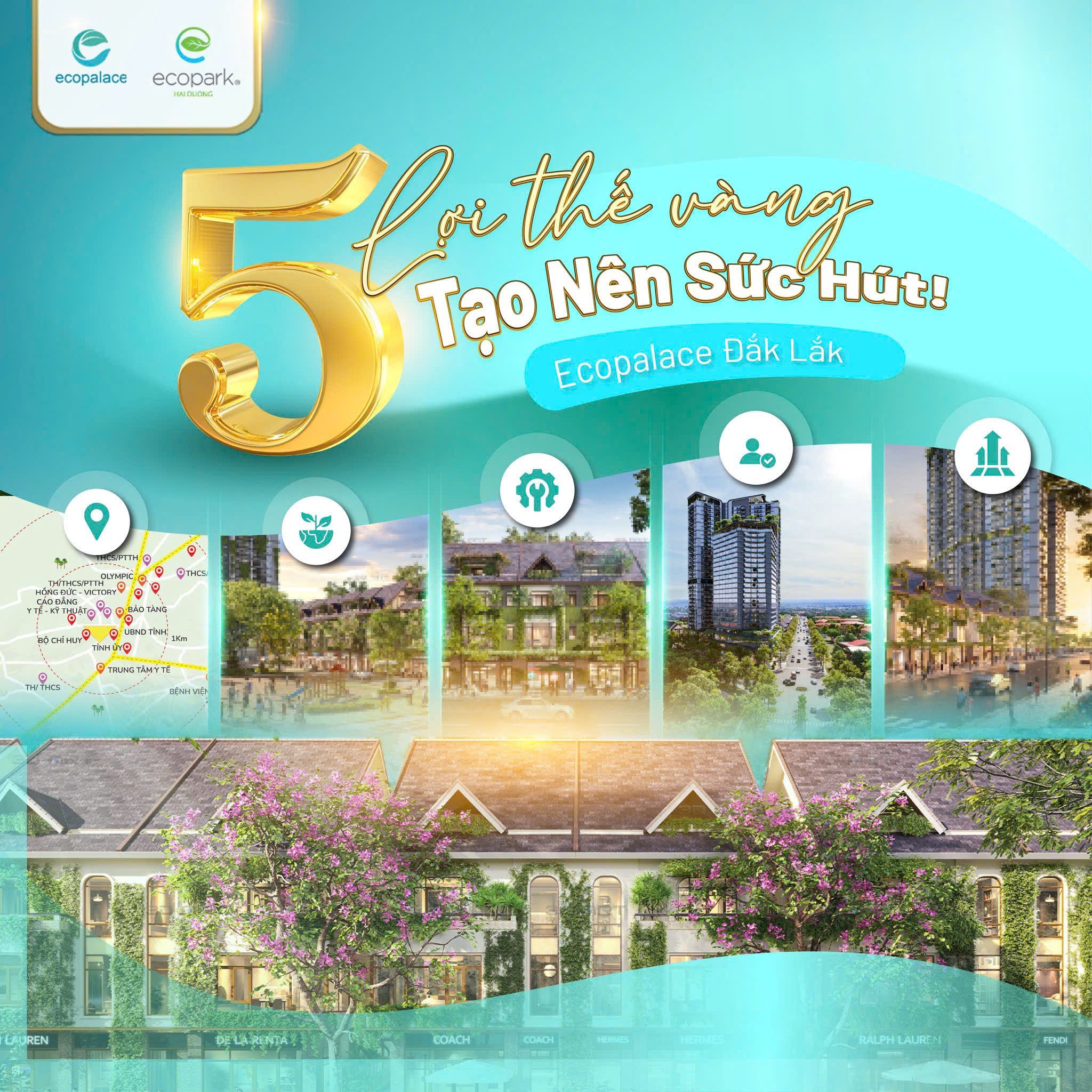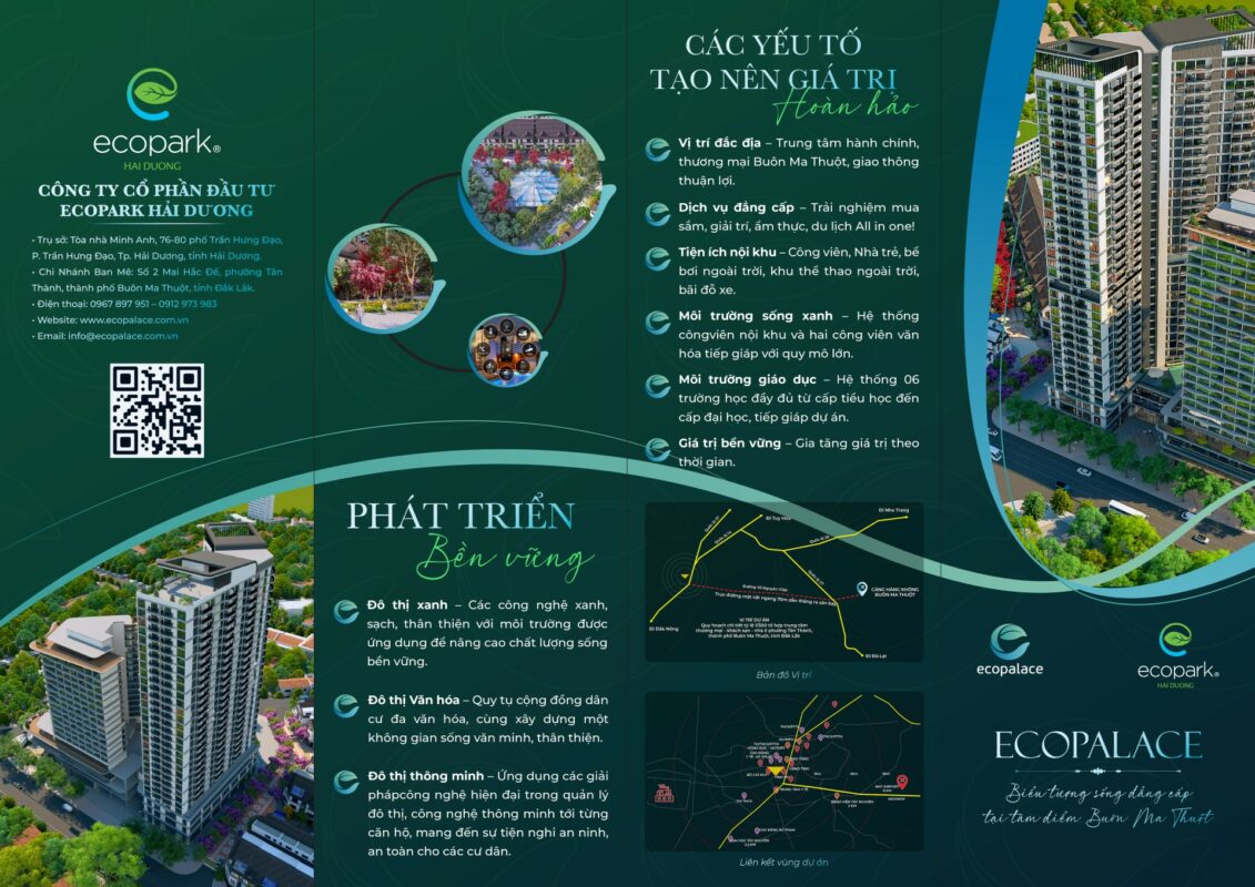 EcoPalace Buôn Ma Thuột, Đắk Lắk – Đô Thị Tri Thức. Dự án được phát triển theo Mô hình Khu nhà ở sinh thái mang phong cách Indochine. Trong đó mỗi cư dân ngoài các dịch vụ tiện ích cao cấp của khu đô thị sẽ được hưởng thêm các dịch vụ cao cấp tại nhà giống như đi nghỉ tại các khu nghỉ dưỡng.